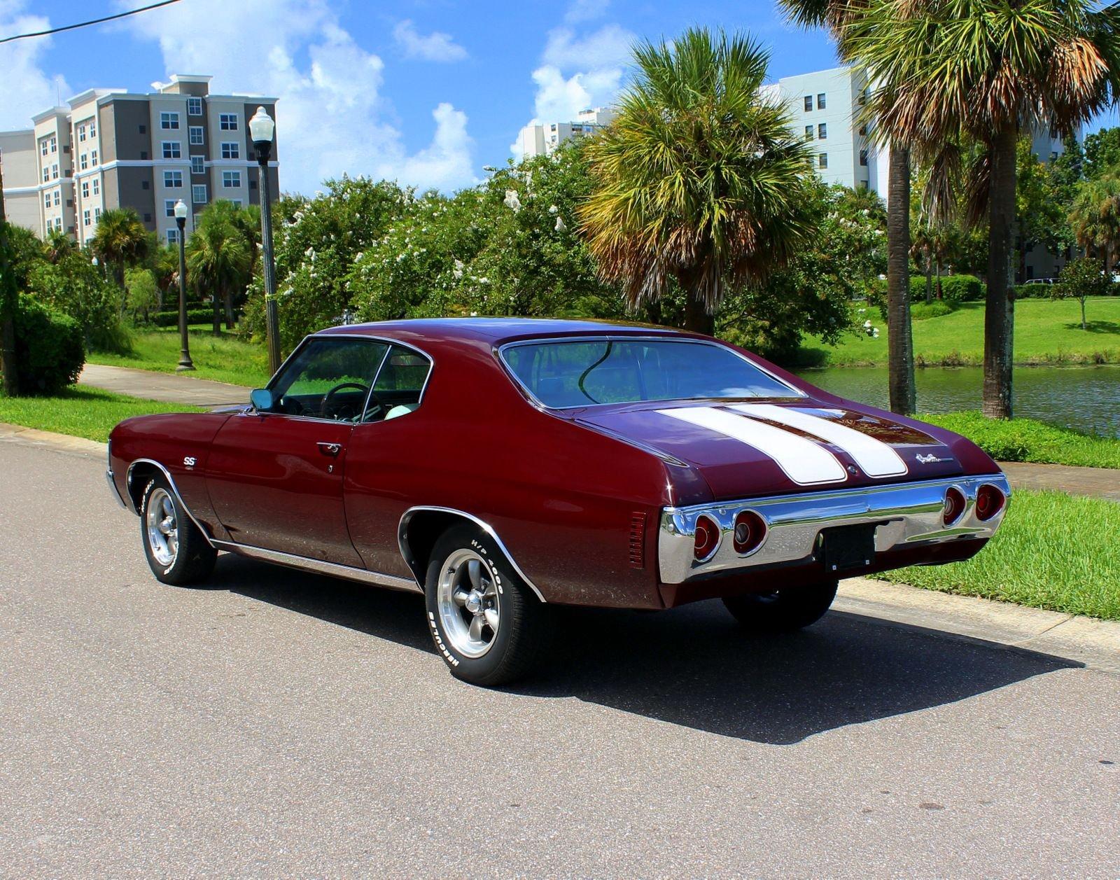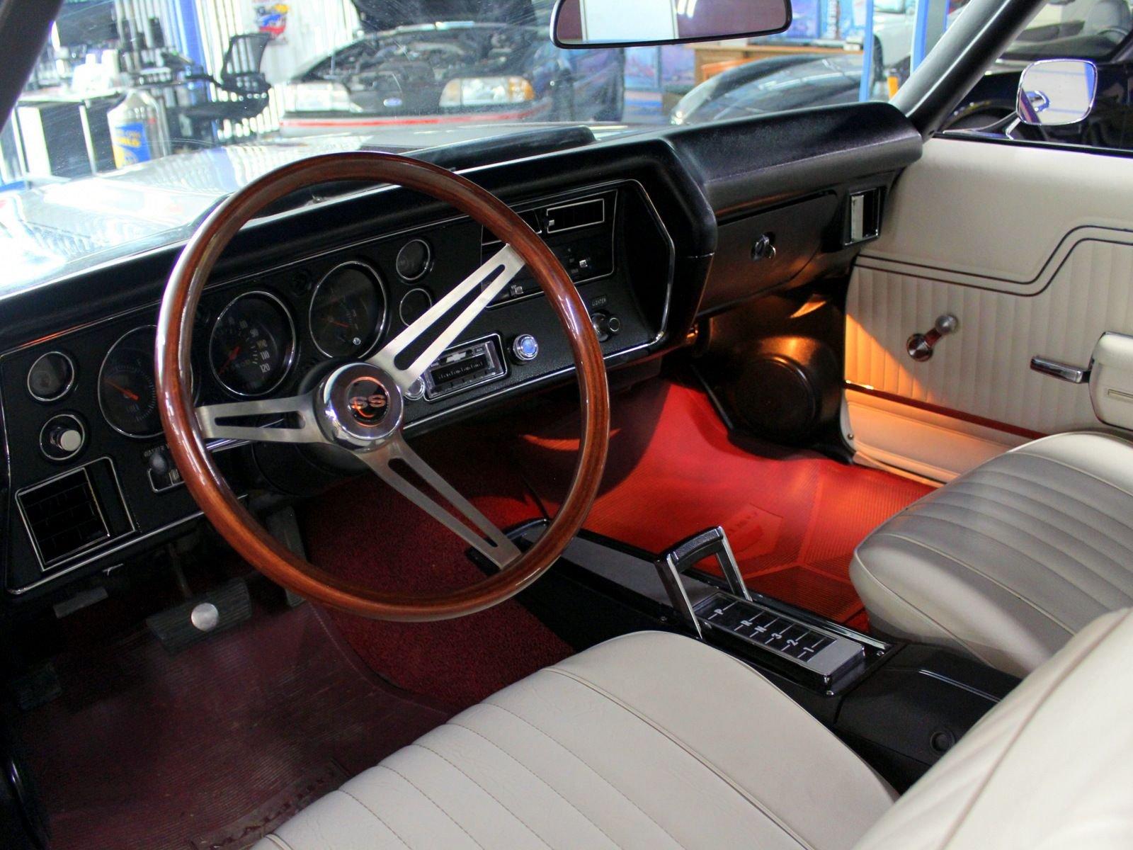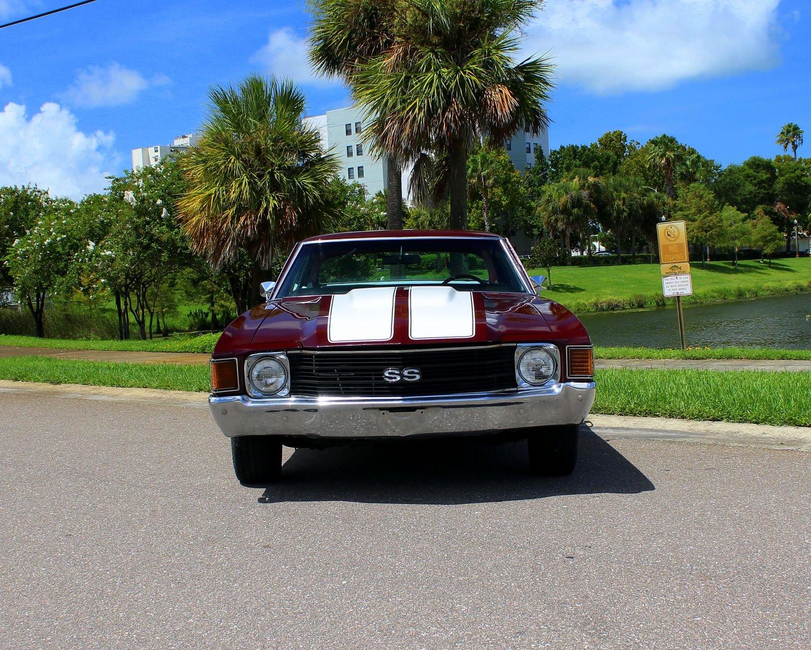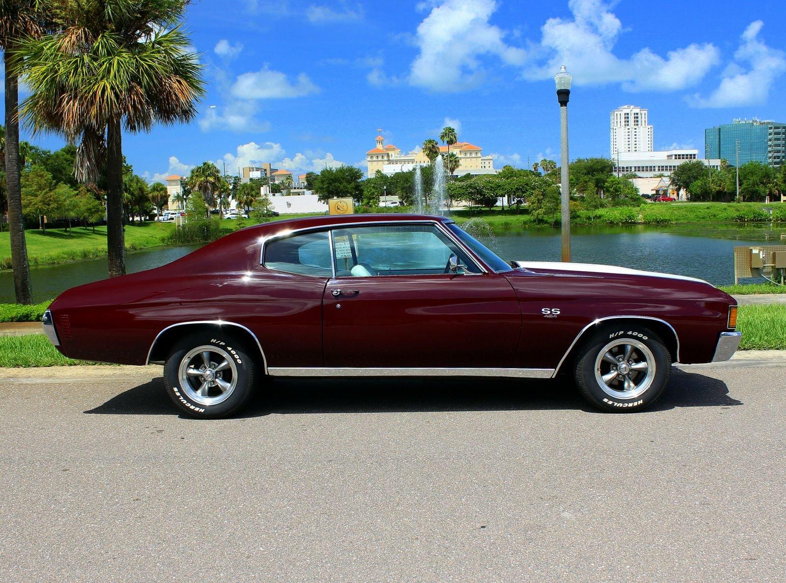 1972 Chevy Chevelle for Sale. Powered by a 454 CI V8 with an Edelbrock Intake, 4 barrel carb, and headers into throaty dual exhaust that create the unmistakable sound of a BIG BLOCK Chevy! It's backed by an automatic transmission, power steering, power disc brakes, and Vintage Air Conditioning. Neat and detailed engine compartment. The contrasting white bucket seat interior, center console, tilt steering column, and wood grain steering wheel all add to the car's appeal. A bold SS stripe package along with badging will turn heads as you rumble past! The car rolls on a set of silver gray metallic alloy 5 spoke rims carrying Hercules HP 4000 raised white letter radials in 215/65R 15's. Chevelles are one of the most popular Classic Cars right now! This Big Block Chevy will provide countless hours of cruising and will be a hit at any car show it attends!