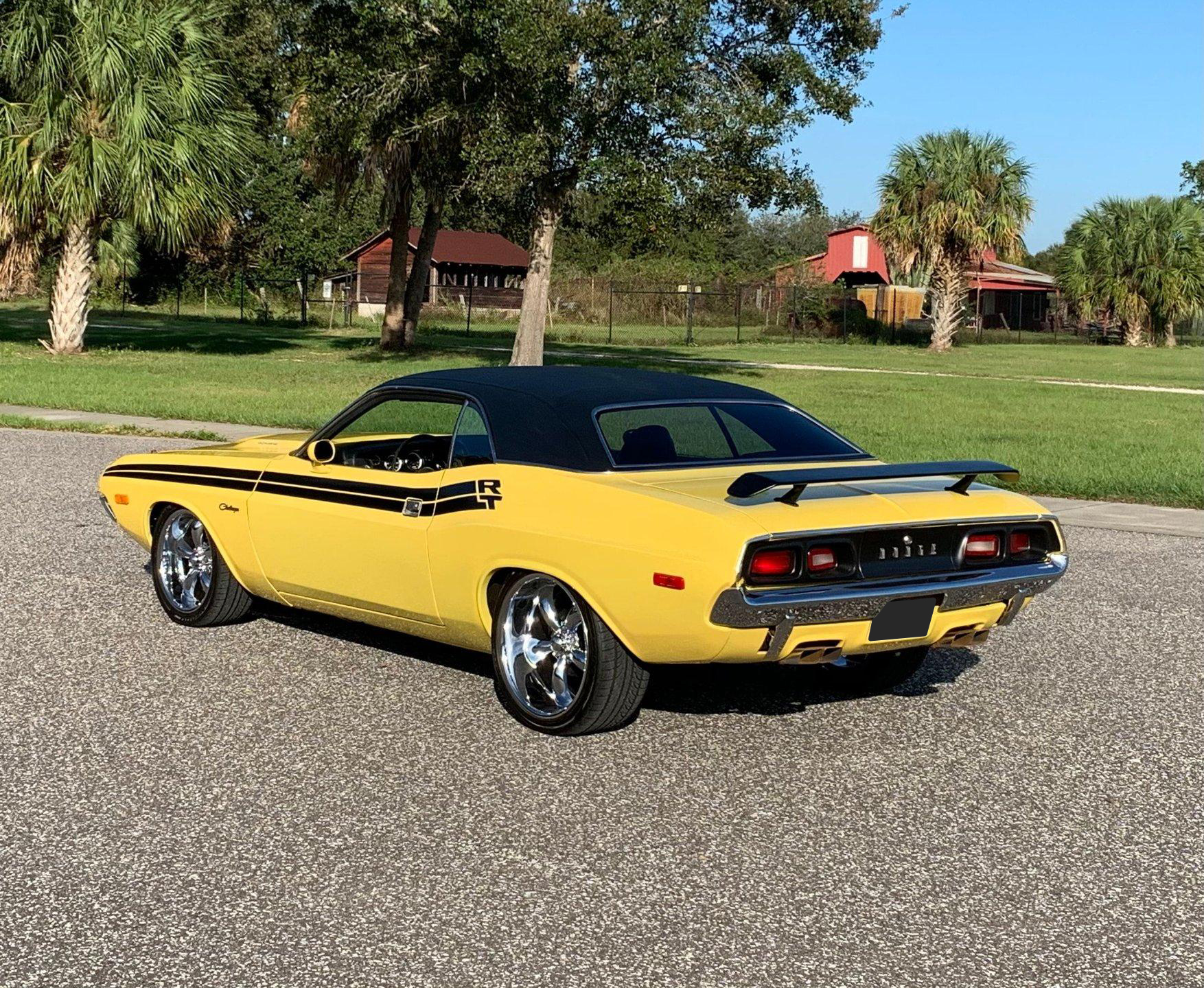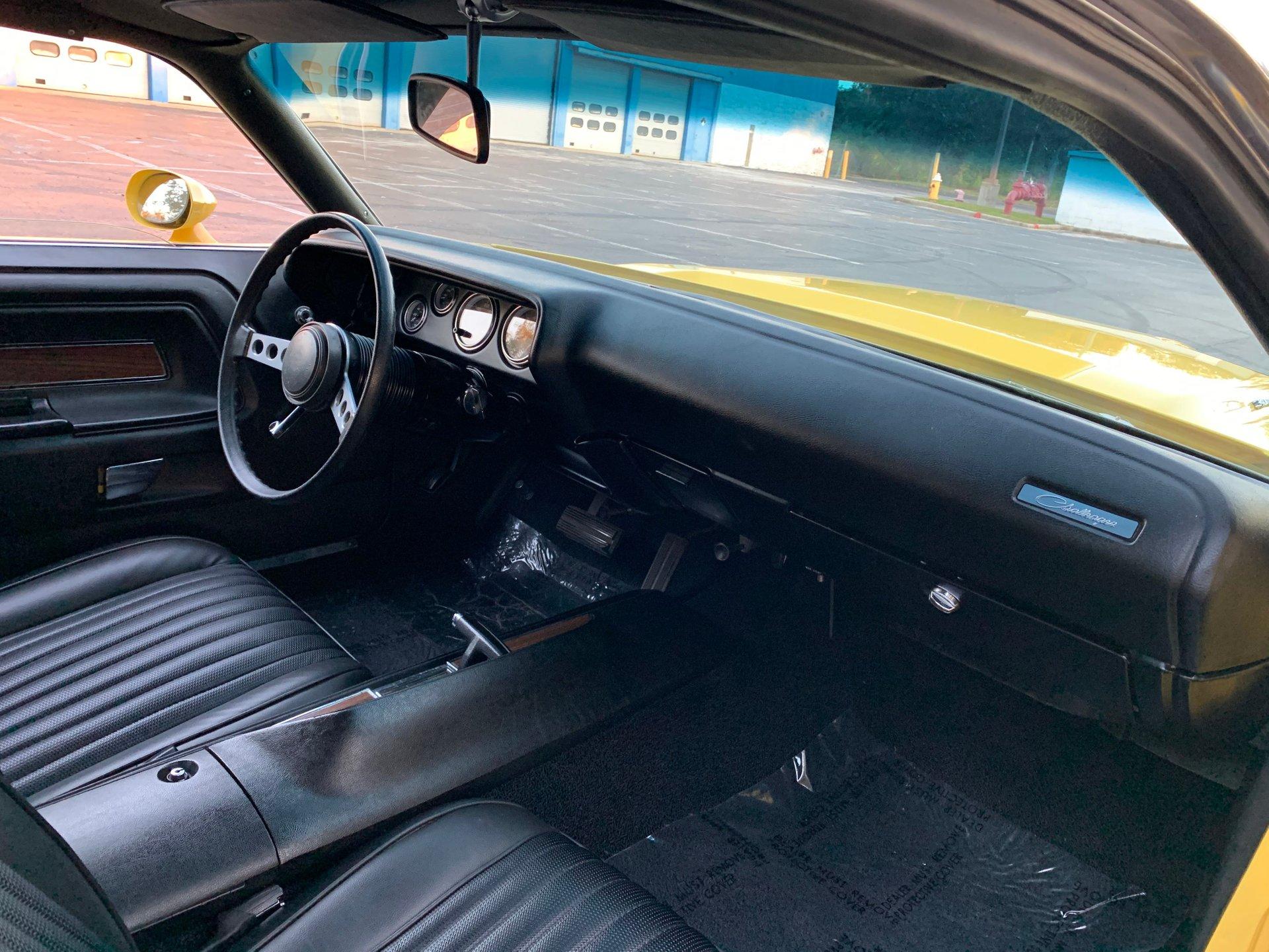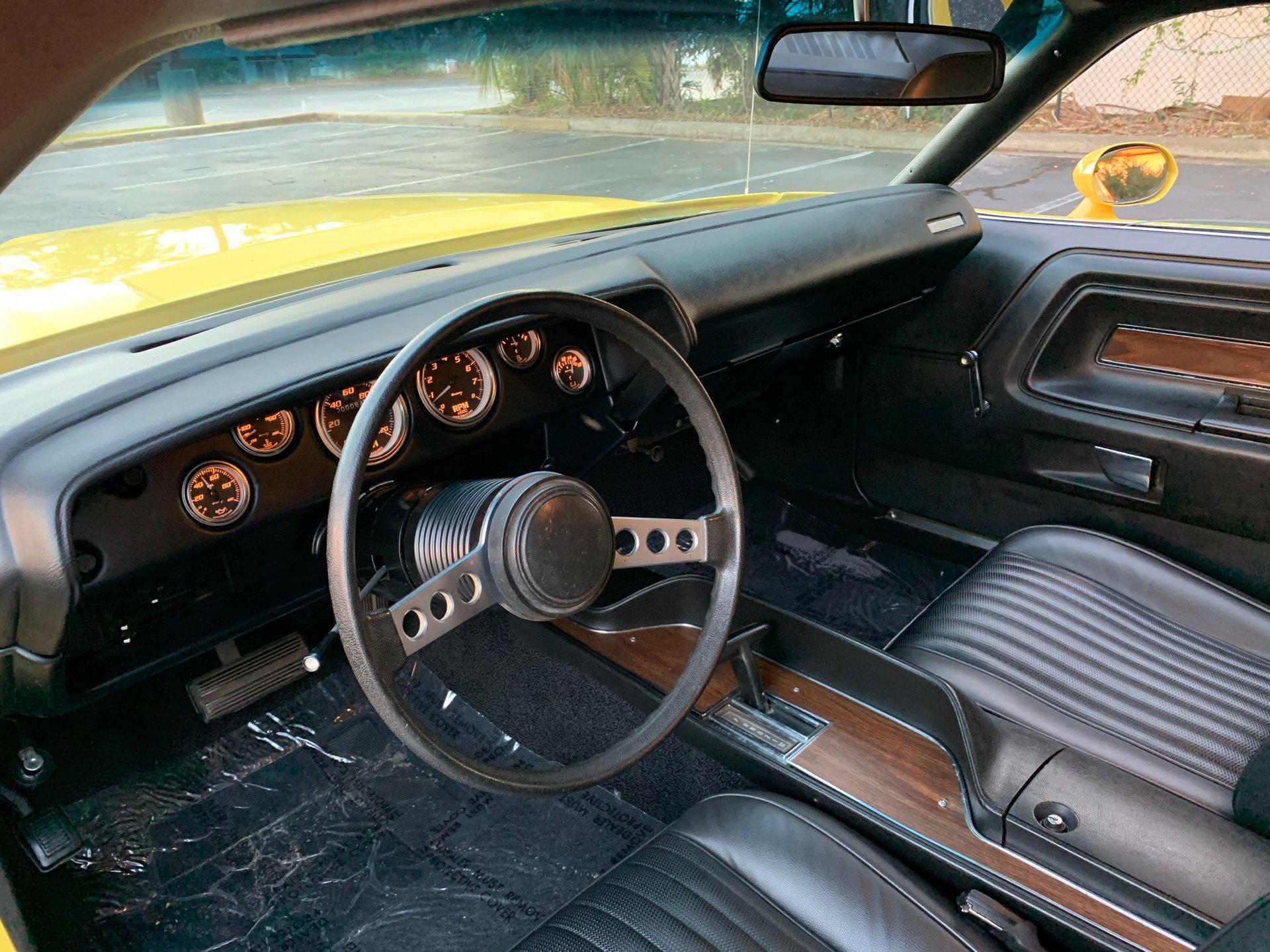 We are pleased to offer this 1973 Dodge Challenger for Sale. VIN matching 340 V8 engine block, Mopar aluminum intake, Edelbrock 4 barrel carburetor, headers, dual exhaust, automatic transmission, front power disc brakes, 8 3/4 rear end, front and rear sway bars, 18”/20” Coys C5 chrome plated wheels, beautiful yellow exterior, black vinyl top, black stripe package, Rally Hood, rear deck spoiler, black bucket seat interior, center console with floor shifter, iEquus Gauge package. With a tenacious sounding 340 V8 and a slick yellow-on-black color scheme, this Super Cool Mopar has that aggressive Pro-Touring look that everyone wants! This Challenger is a ton of fun and an eye catcher everywhere it goes! Call us today for the details before it's gone!